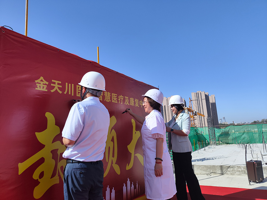 9月3日上午,金天川醫院隆重舉行喜封金頂儀式。今天的儀式發(fā)展重要的全體醫護人員,施工單位,設計單位,監理單位代表參加了今天的封頂儀式。集團公司副總經(jīng)理、金天川醫院總經(jīng)理劉昆女士發(fā)表了熱情洋溢的講話(huà),劉昆副總強調今天是醫院發(fā)展史上的一個(gè)里程碑,金天川醫院即將翻開(kāi)嶄新的一頁(yè)。施工單位新疆七星科技股份有限公司代表現場(chǎng)進(jìn)行了表態(tài)發(fā)言,表示將保證醫院大樓能夠保質(zhì)保量如期交付使用。隨著(zhù)封頂禮炮燃起,最后一罐混凝土完成澆筑,標志著(zhù)醫院正式封頂!