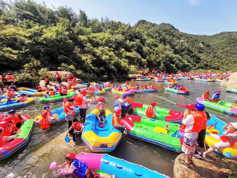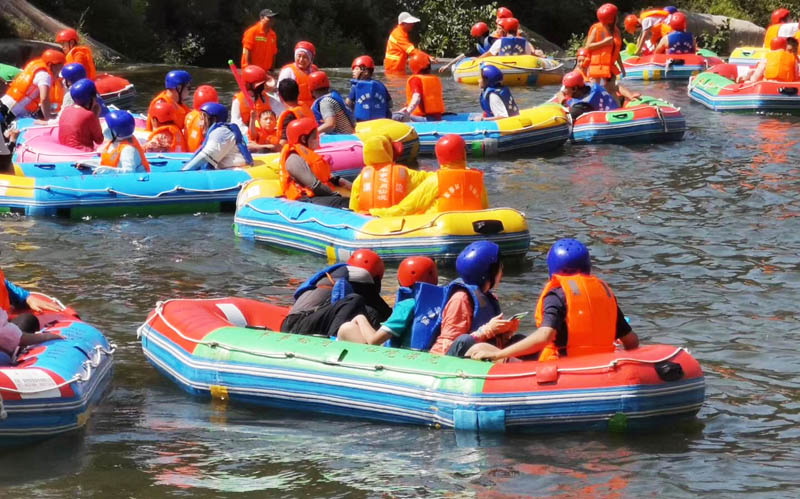 在悠長(cháng)的河谷中,一座座山嶺飛恃岸邊,形成數個(gè)S道,一彎未過(guò),一彎又起,峰回路轉,彎彎相連,給人以“山重水復、柳暗花明 ”的不同感受。大家一起打水仗、撞劃艇,嬉笑聲、吶喊聲此起彼伏,不絕于耳,仿佛回到了童年,忘記了城市的喧囂,忘記了生意的煩惱、修理的勞累,歡笑聲匯集成了一首首歡快的贊歌。